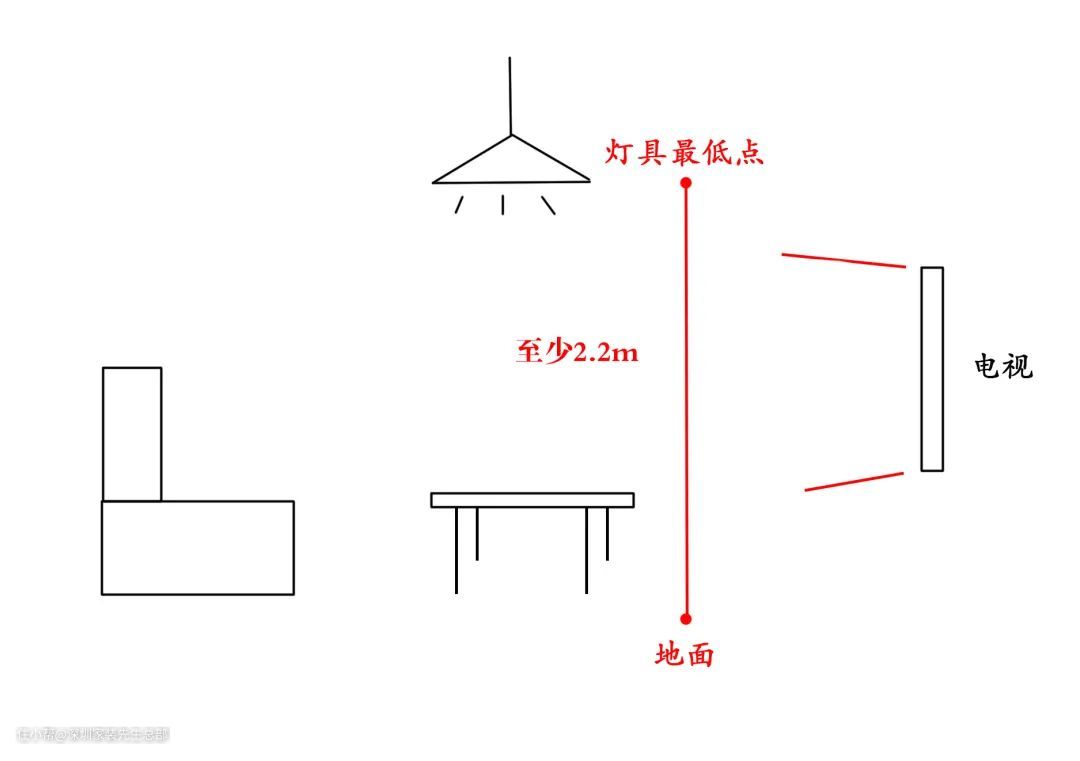 吊灯的最低点到地面的距离都是不低于2.2m,并且这个距离大于电视张开的5º角,不会产生眩光,看电视效果杠杠的。