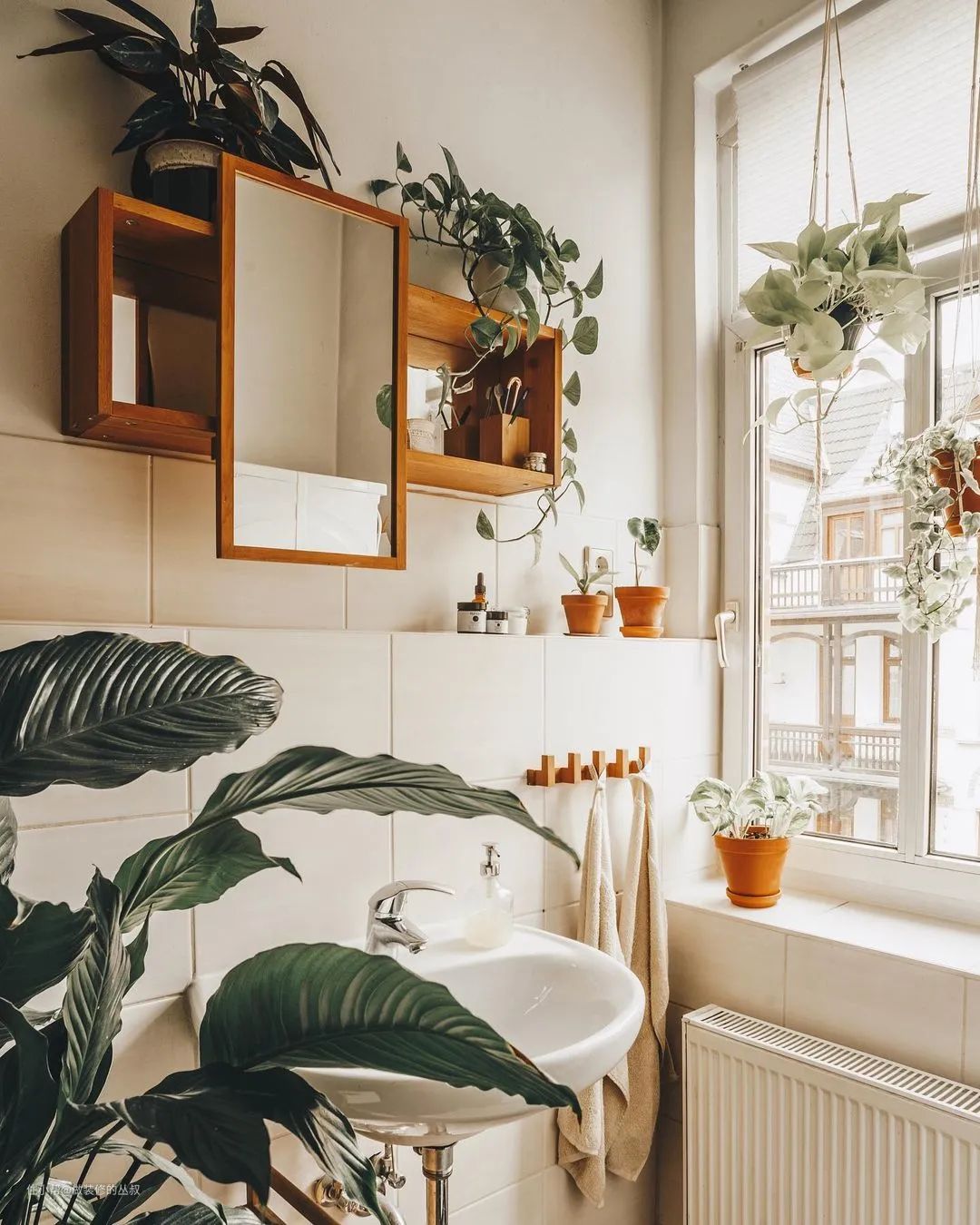 卫生间也是摆放绿植的中心区,摆放上一棵大大的绿植,一下子就成了吸睛亮点。