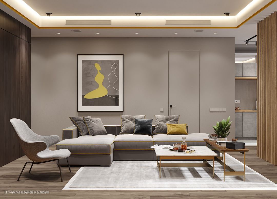 特别对于一些层高偏低、面积偏小的户型而言,适度使用氛围灯,将空间内的灯光均匀布光,冷暖光需根据装修颜色变化,小户型尽量选择浅色系装修配色,作为光线反光板可以起到不错的效果,另外再进行主照明+辅助照明,实现均匀照明,消弭不同空间的边际感。