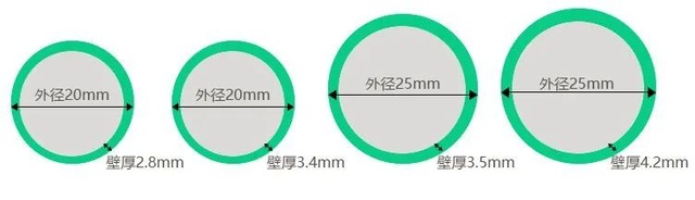 水管上一般标有「20*2.8」,「25*4.2」,20(4分管)、25(6分管)指水管粗细,决定出水量,2.8、4.2指水管壁厚,越厚水管越耐用。