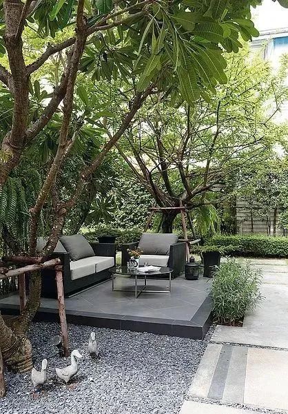 而砾石不需要过多打理,粗糙和百搭的特性让它的加入为空间带来独特质感。大量运用于铺地制造的统一感非常适合现代花园。