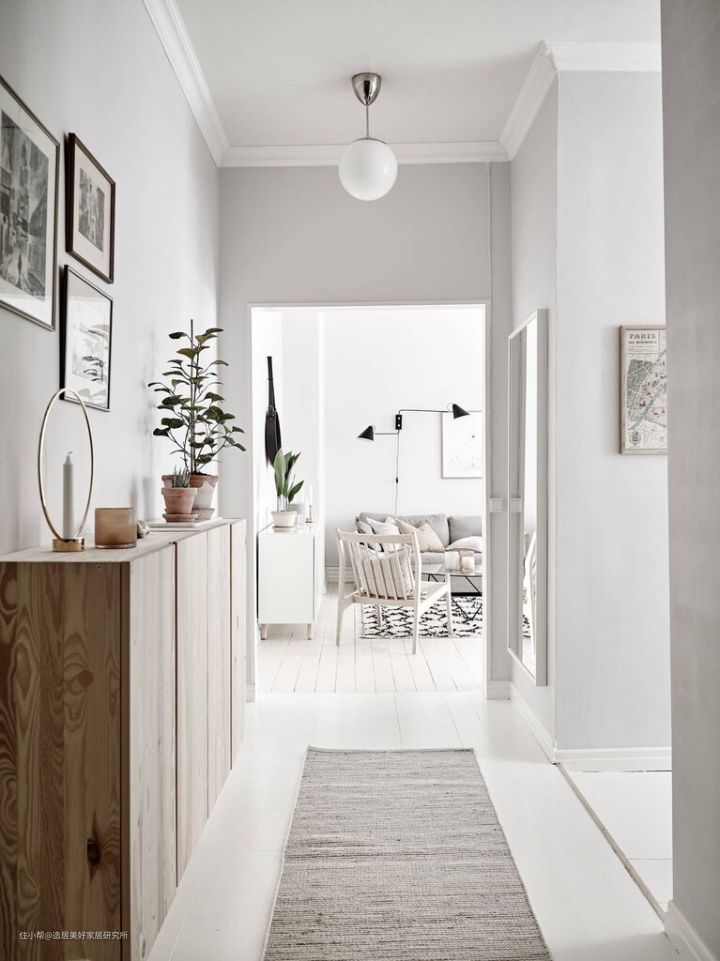 但不管是哪种类型,玄关区域走廊的设计,需结合这个区域的特性,选择具有缓冲效果、美观、不占用过道的物品进行修饰和改善。