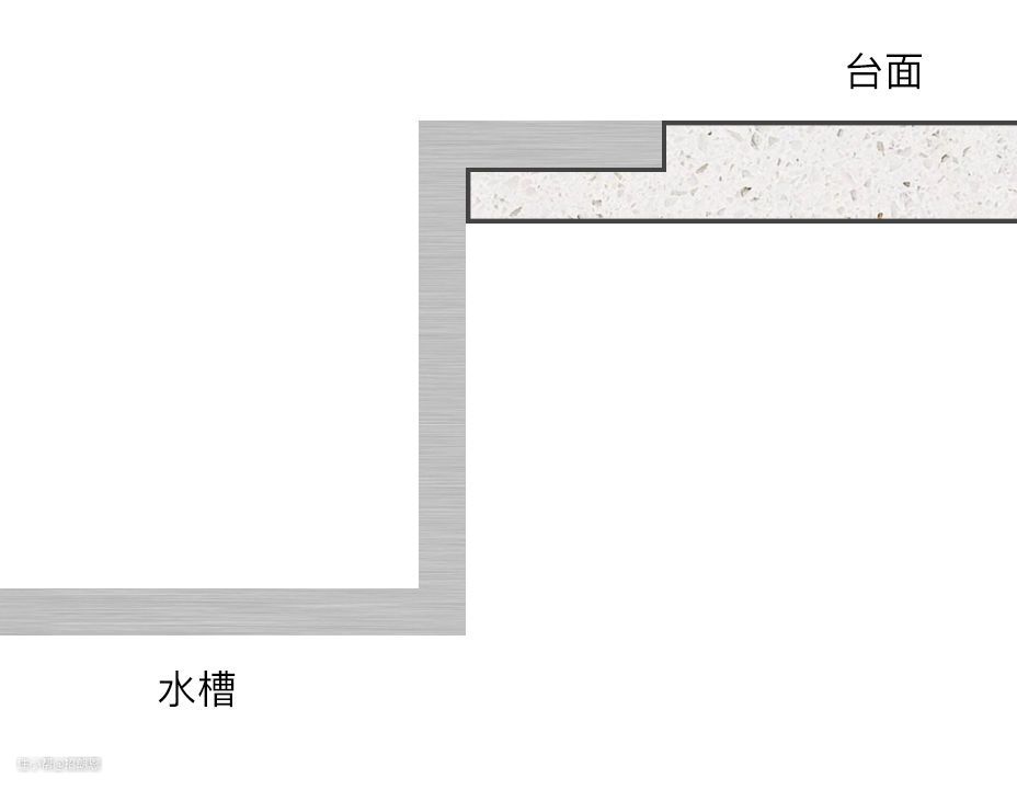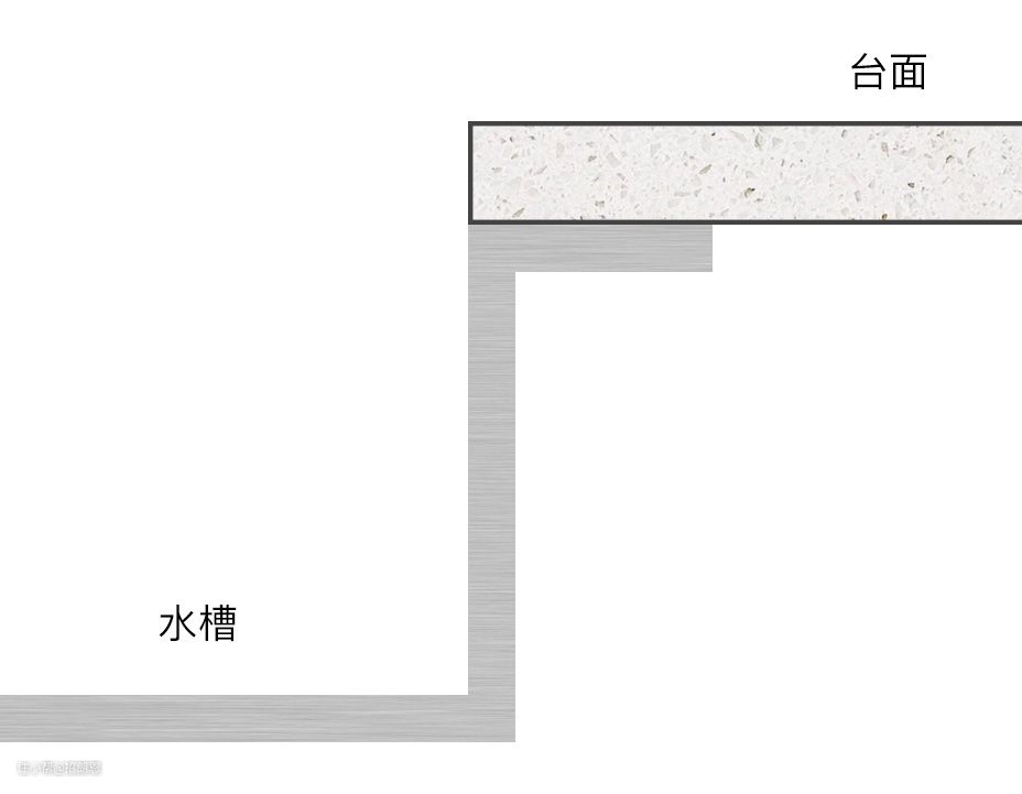 台上盆在安装时,边沿顶部会安装在橱柜台面上,水槽是直接架在台面上的,从侧面来看,水槽稍微凸出台面。