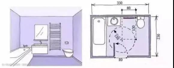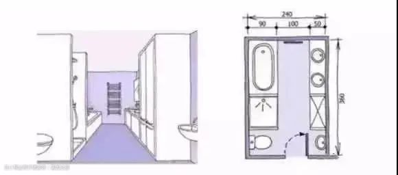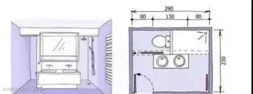 ④现有的卫生间户型我们可以简单的区分为大、中、小这三种,常规情况下,卫生间合适的尺寸在900mm左右。