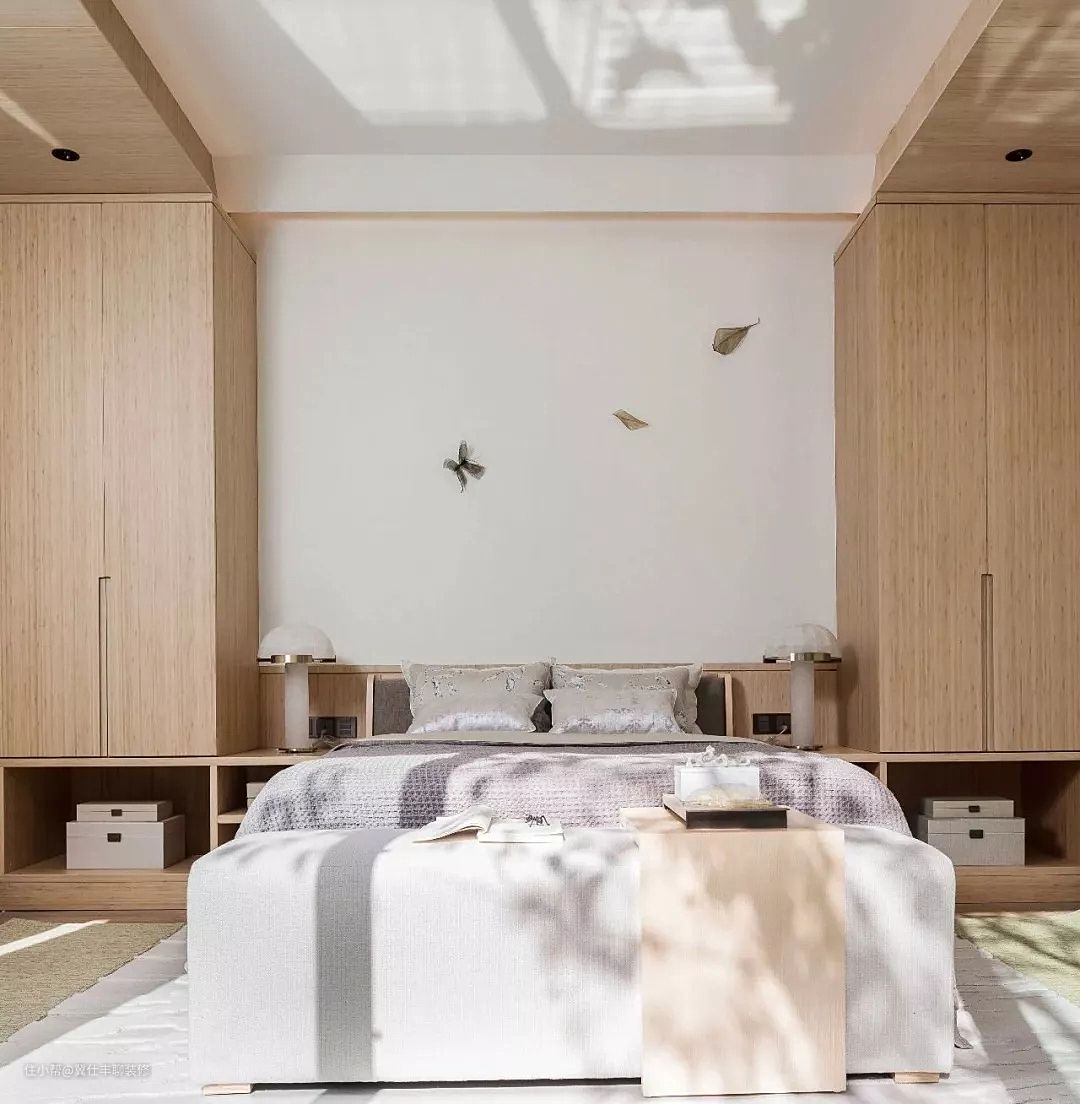 ▲ 如果空间进一步允许的话,那就可以在床头的两侧分别定制一组柜子了,床头背景墙同样还可以还保持一定的独立性,这样的设计也要比在床头两侧各摆放一个床头柜实用一些吧?