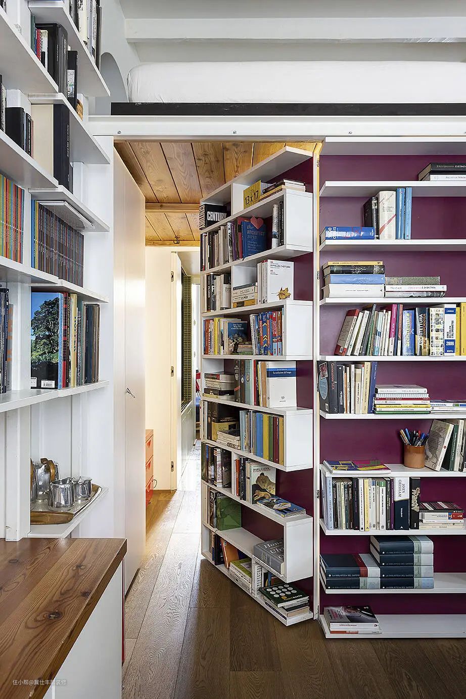 ▲ 业主真是一个爱读书的家庭啊,书房的藏书更多,而且还用书柜作为了书房的隐形门,既保持了室内的整洁感,又增加了藏书数量。