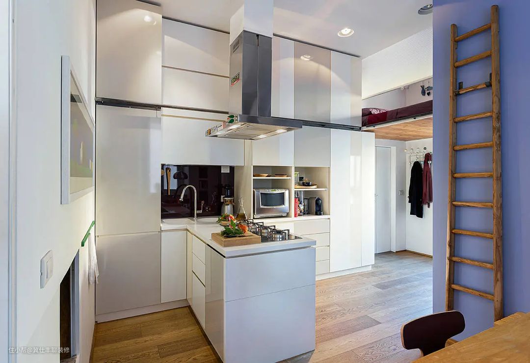 伸缩楼梯、错步楼梯和隐形书柜门,除了这些设计元素,你还喜欢这套LOFT哪些设计元素呢?