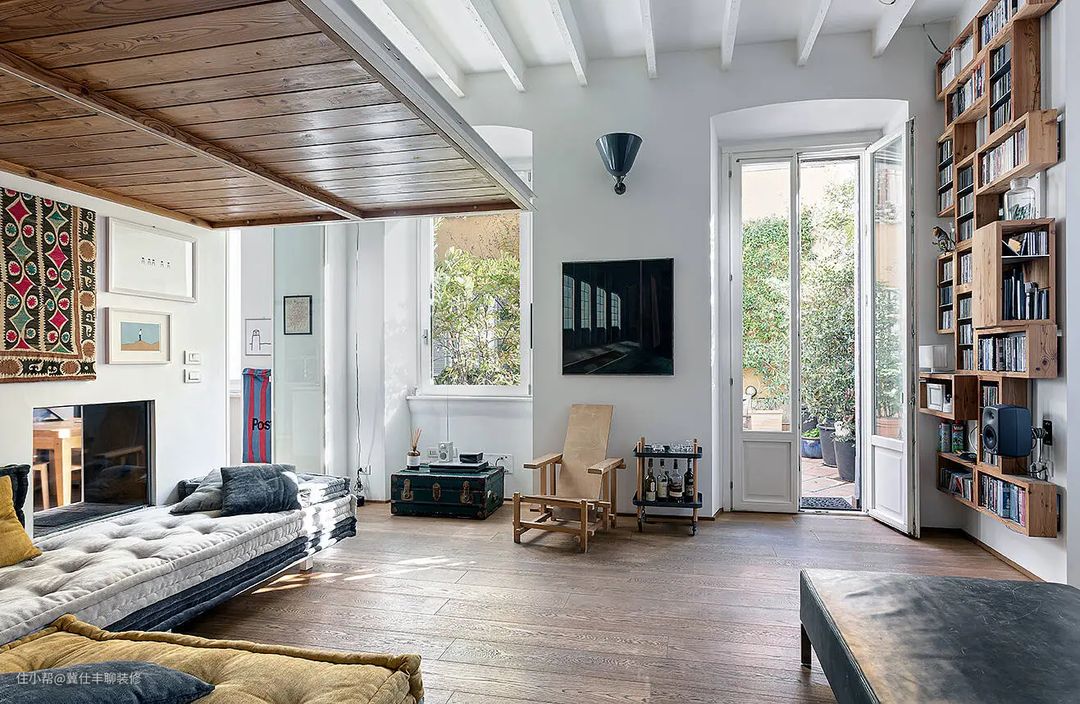 大家见过伸缩楼梯和错步楼梯吧?也见过用书柜做隐形门吧?这对提升空间利用效率和提升室内颜值都非常有效,但不少设计案例都是用到其中一个设计方案就不错了,今天冀仕丰小编分享的这套案例来自意大利米兰,是一套工业风格的LOFT公寓,由Tommaso Giunchi设计,这个房子居然把这三个设计方案全部实现了。