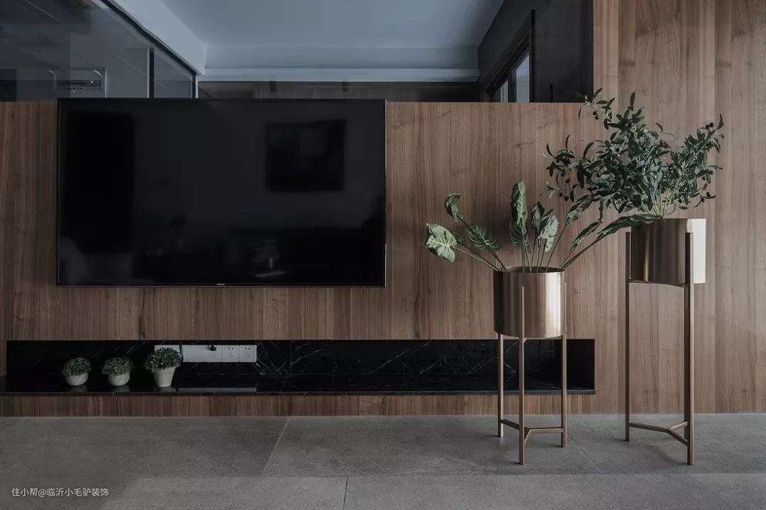 然而,随着极简主义思潮的风靡,以及电视自身存在感的大大削弱,人们的家装观念也受到了一定影响,开始崇尚「去繁从简」,不做繁复的修饰与设计,让电视背景墙变得实用、美观起来。
