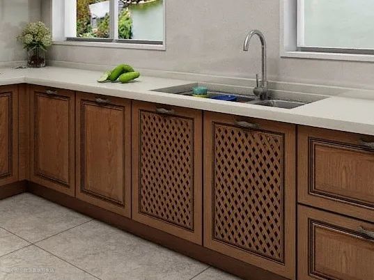封闭式柜门容易出现不通风的问题,镂空网格设计既可以实现视觉上的美感,对水槽内部的通风效果也好,有一定的防潮作用。