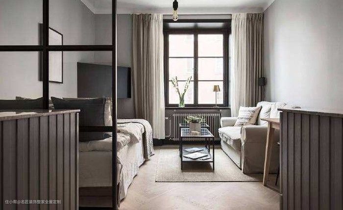 硬质隔断最好不要出现在小户型装修中,显得空间更加小了,如果实在有必要的话可以用玻璃隔断来代替。