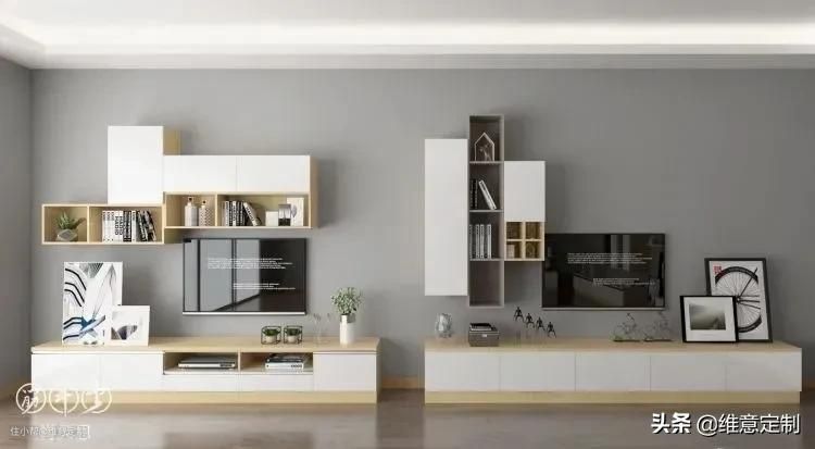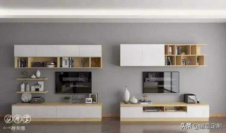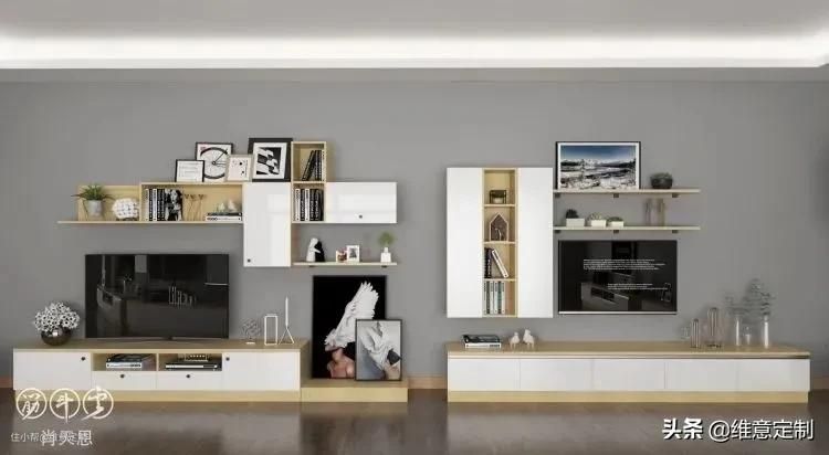 储物式电视背景墙比较普遍,利用墙面空间打造储物柜,收纳能力蹭蹭往上升!当然,根据户型大小和家庭需求,设计也各不相同。