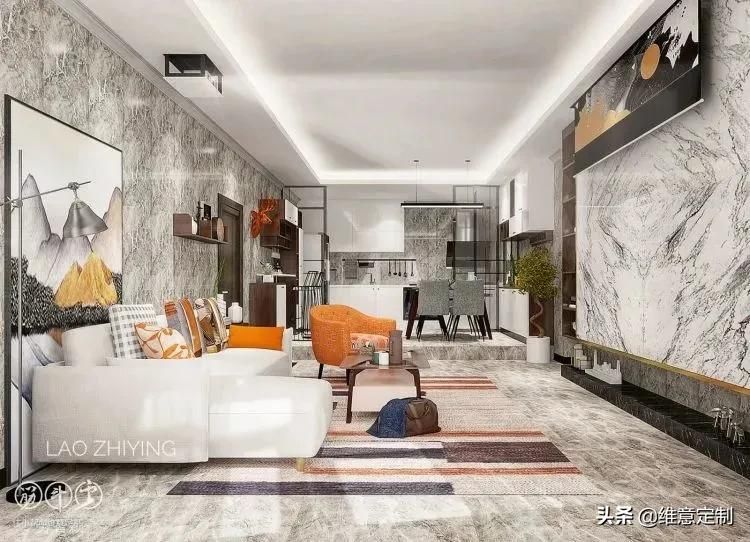 ▲以极简大理石作为电视背景,下方打造一个矮柜,两边则是到顶储物柜,高低柜组合保留电视背景墙,同时增强收纳能力,是超实用又不失高级的设计~