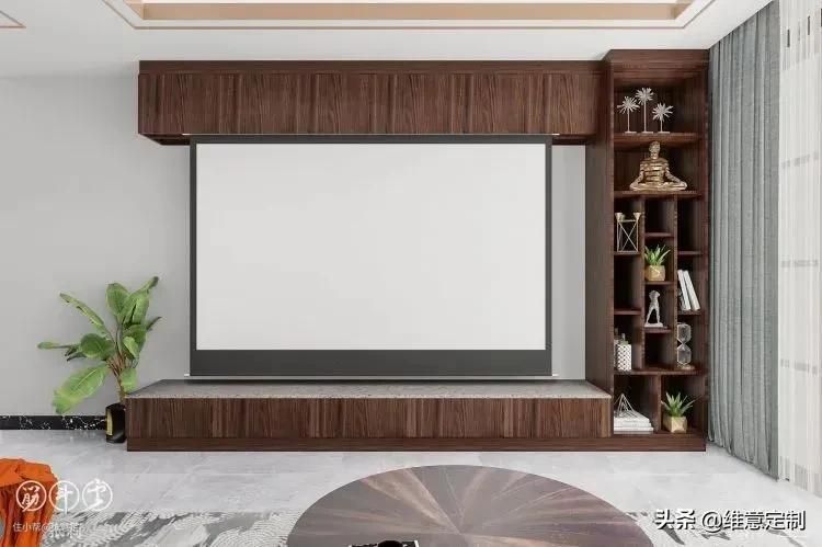▲一种是留出投影的位置,背景同样选择各种花色或留白,周围则打造展示柜,美观与实用兼具。