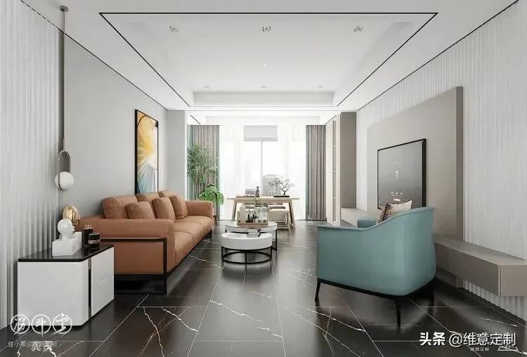 ▲与全屋墙面统一色调的大理石纹理,简约又高级。与此同时,墙面中间做成凹陷设计,使整体更具空间立体感,打破了平面背景墙的单调沉闷。