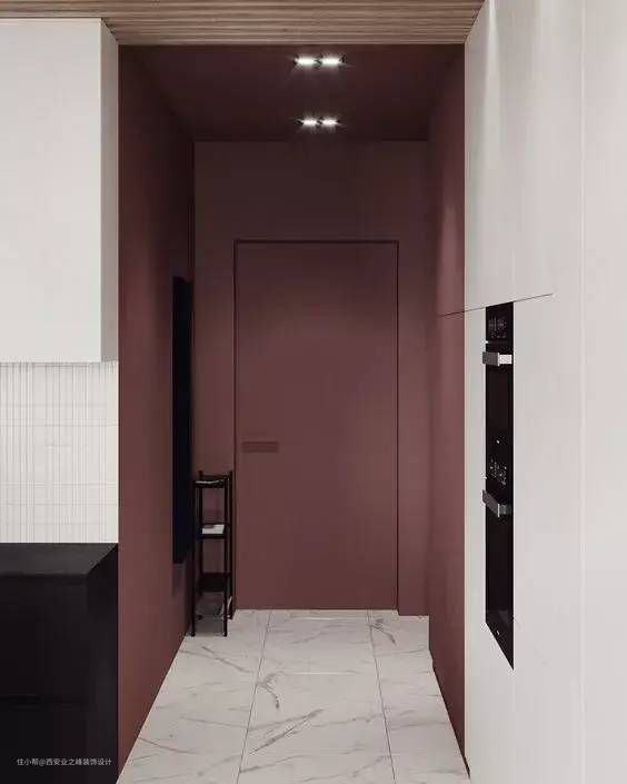 这是很普遍也是很简单的方式了,把门的颜色材质和墙面一样,基本上就可以了。再配点线条之类,让门与墙融为一体。