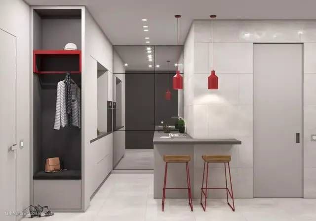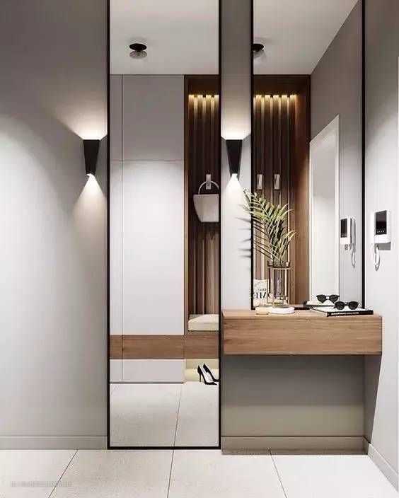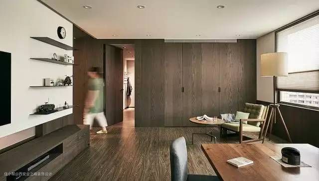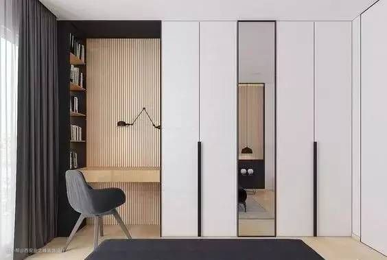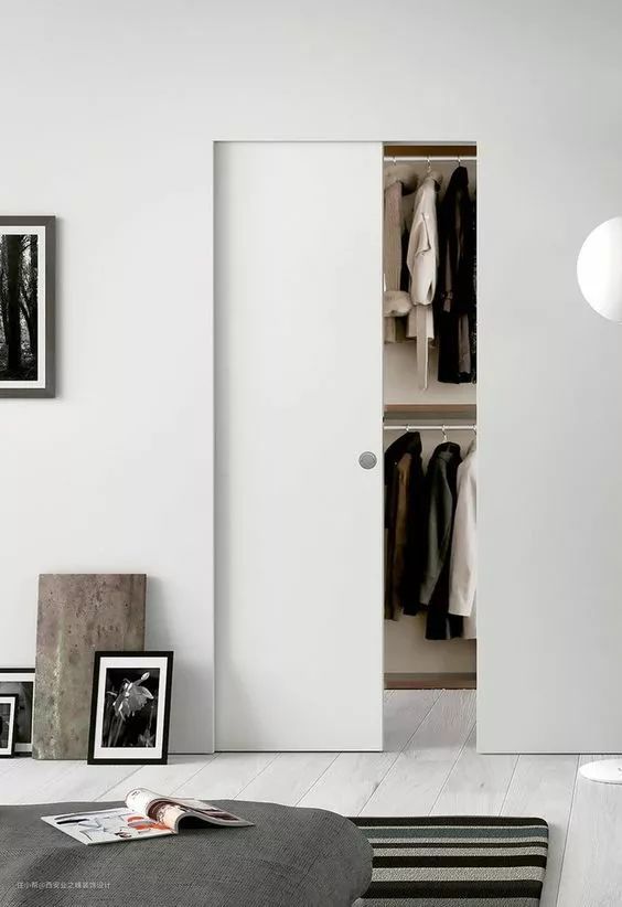 门可以设计的和柜子融为一体,这样基本上达到了很好的隐藏效果。一般在衣帽柜和储物柜这样的地方,很适合做隐形门了~