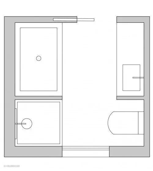 这种浴室设计就有两种可能性:入口可以在侧壁的中间,也可以在侧壁的中间。