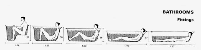 可以参考这个比例图,180cm的汉子在不同尺寸的浴缸里是什么体验。