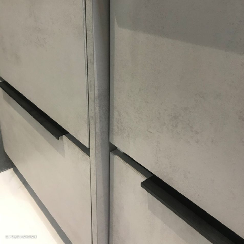 屋主最开始也觉得隐形拉手很好看、不占地方,所以做了一个黑色L型的的隐形拉手,实际使用后发现,隐形拉手不太实用,因为当你在厨房操作时,双手基本都有水有油,直接去拉门板,会弄脏柜门,需要经常去擦柜门,柜门封边做得再好,经常有水也担心会封边开裂,所以屋主又在网上买了长拉手装上,使用起来方便多了。