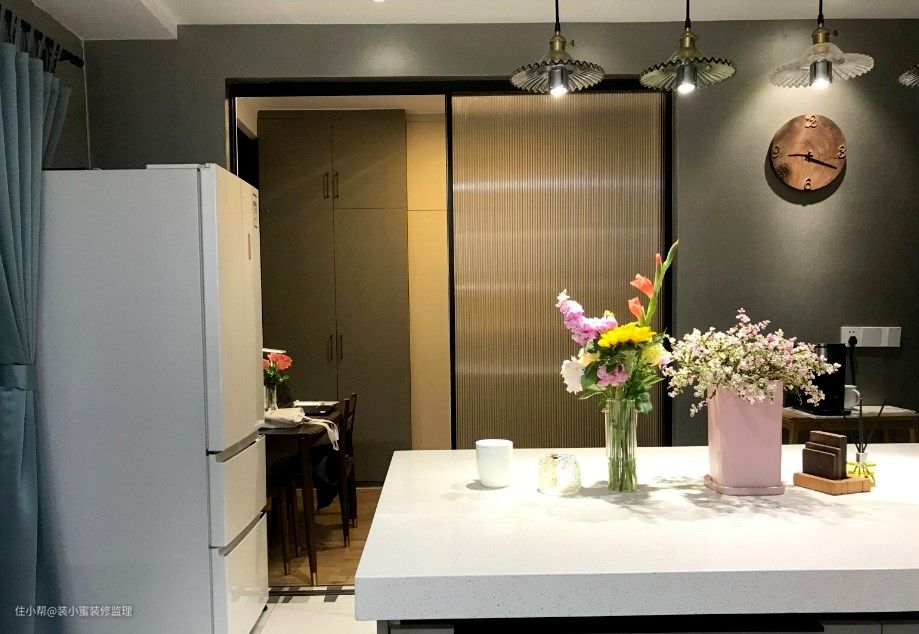 屋主这次装修,结合老房子不堪回首的使用体验,76cm高的砖夹橱柜,洗菜洗碗洗得腰酸背痛,翻了很多案例,最终决定装高低台面,台面高度是低台82cm、高台89cm、中岛90cm,适合身高158-175cm的人使用,洗菜再也不用弯腰驼背!