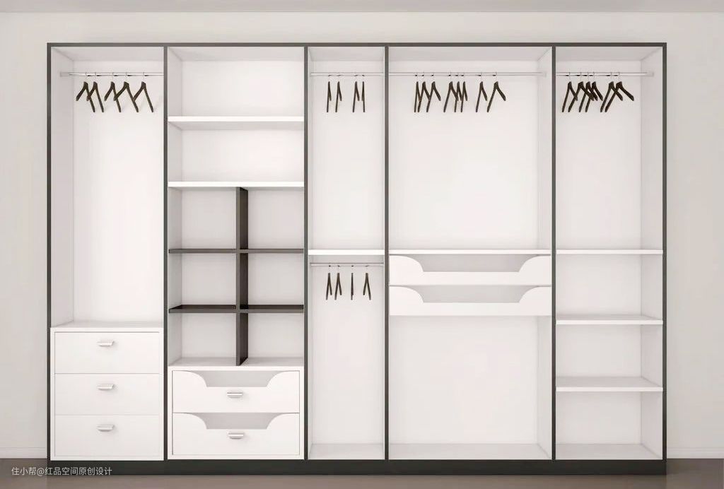 1.使用宽大的白色衣柜门时,如果不想太单调,可以在墙壁上涂点颜色。否则,白色墙壁、白色的门、白色的脚踢线看着白色的扁担。除非你喜欢这种情调。