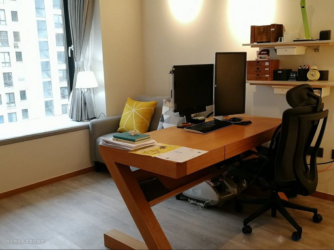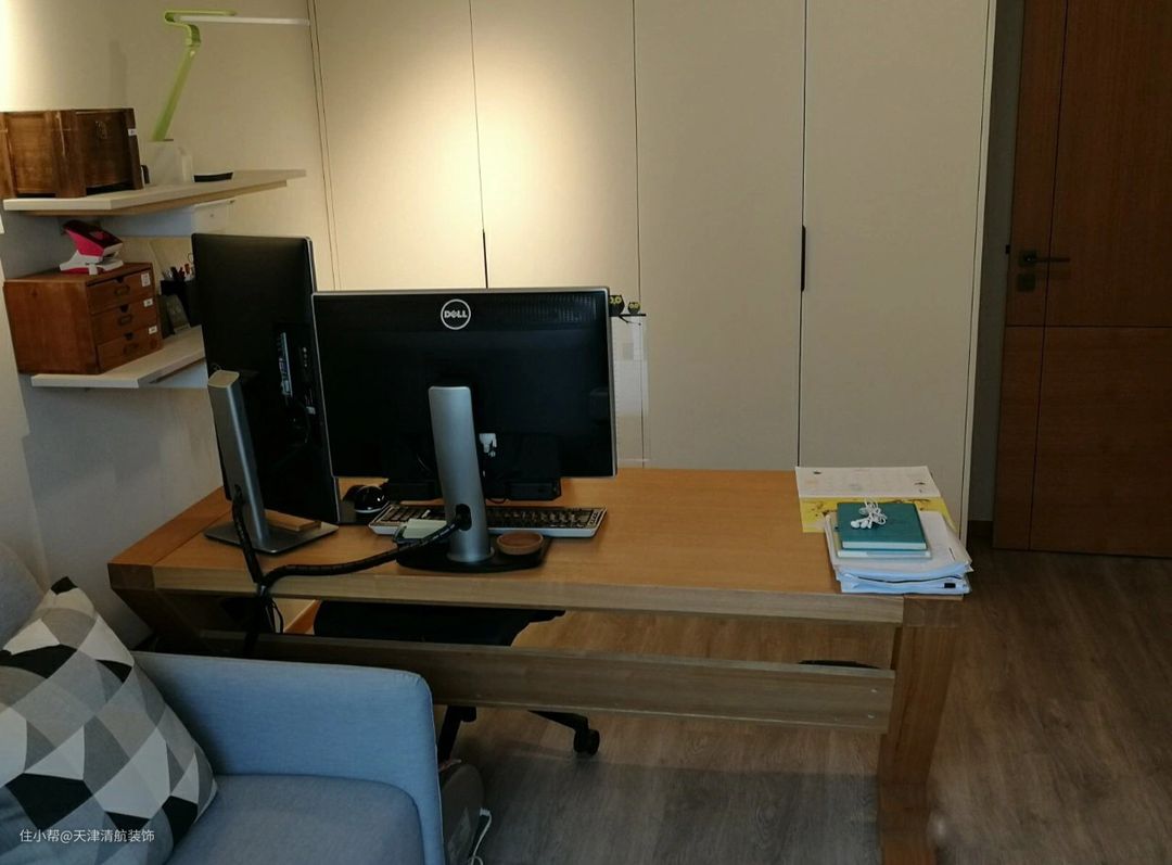 考虑到需求,腾出一个空间作为办工区域,在这里办公的时候,不会被家人吵到,更不会影响到家人。以后如果有需求的话,作为客房也是可行的,毕竟还安装了一个衣柜,储物空间足够。