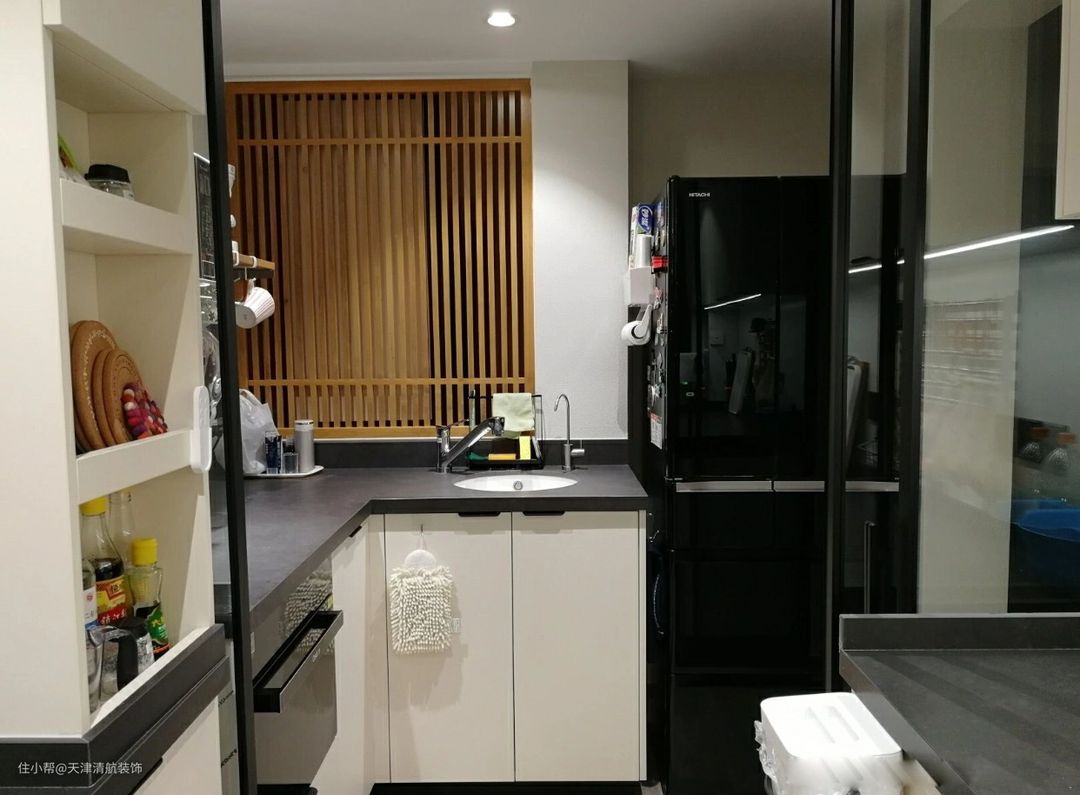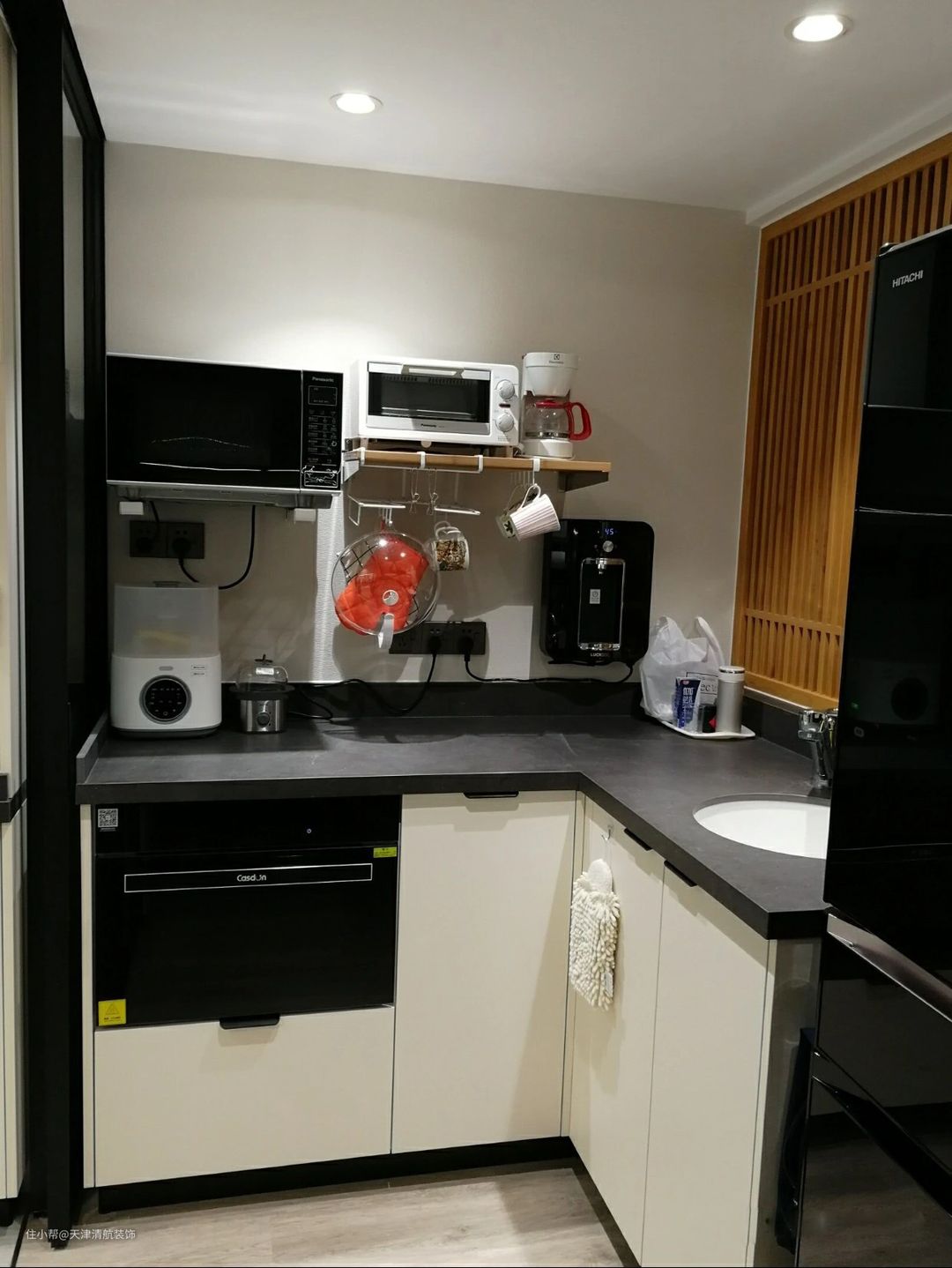 这边还有一个西厨,定制了“L”字型的橱柜,预留了刚好可以放冰箱的位置,使用很方便。在这里主要是干区,主要是安排烤箱、微波炉、各种小家电等等。对生活比较高要求,一些厨具家电是不可缺少的一部分。