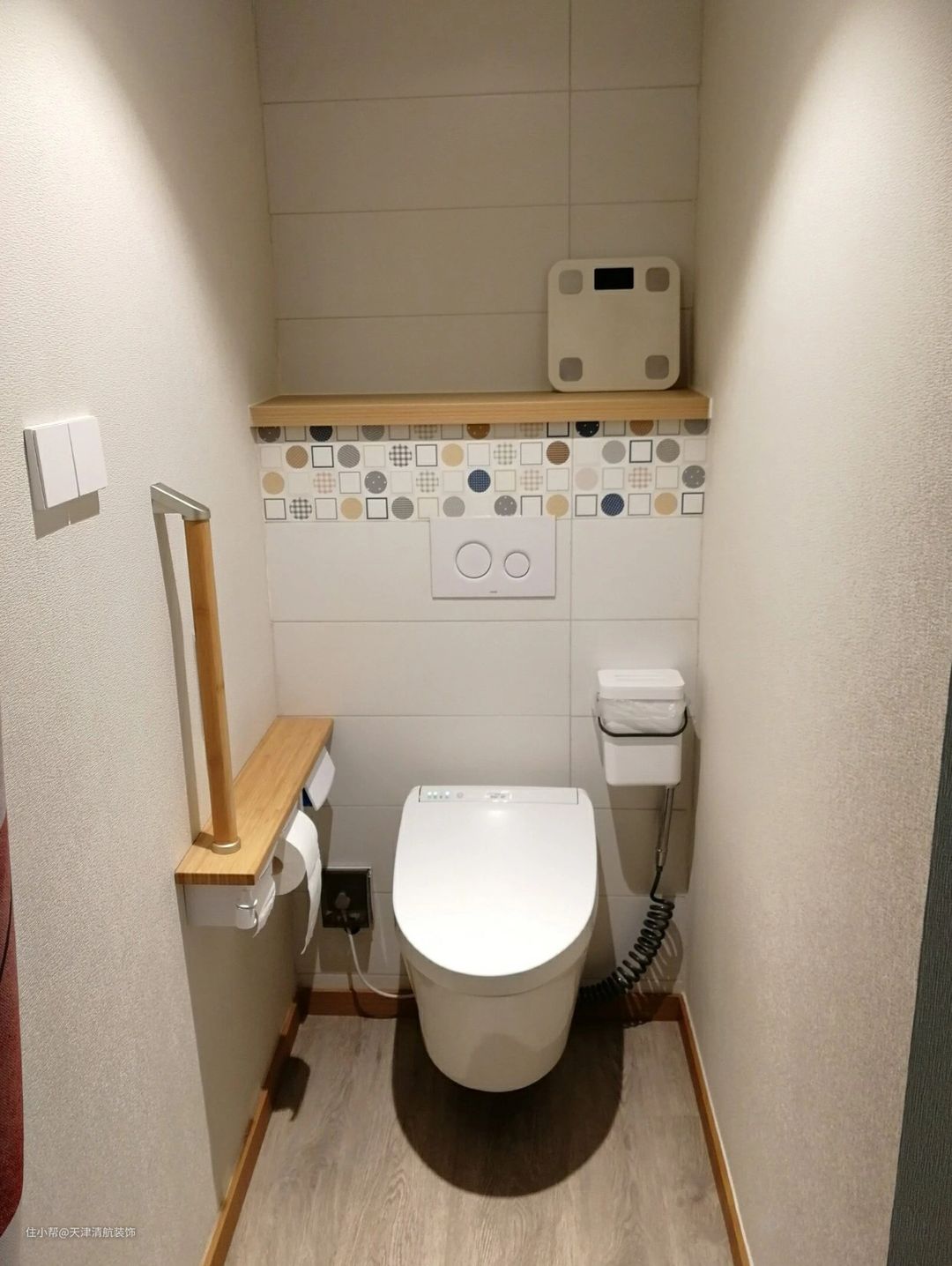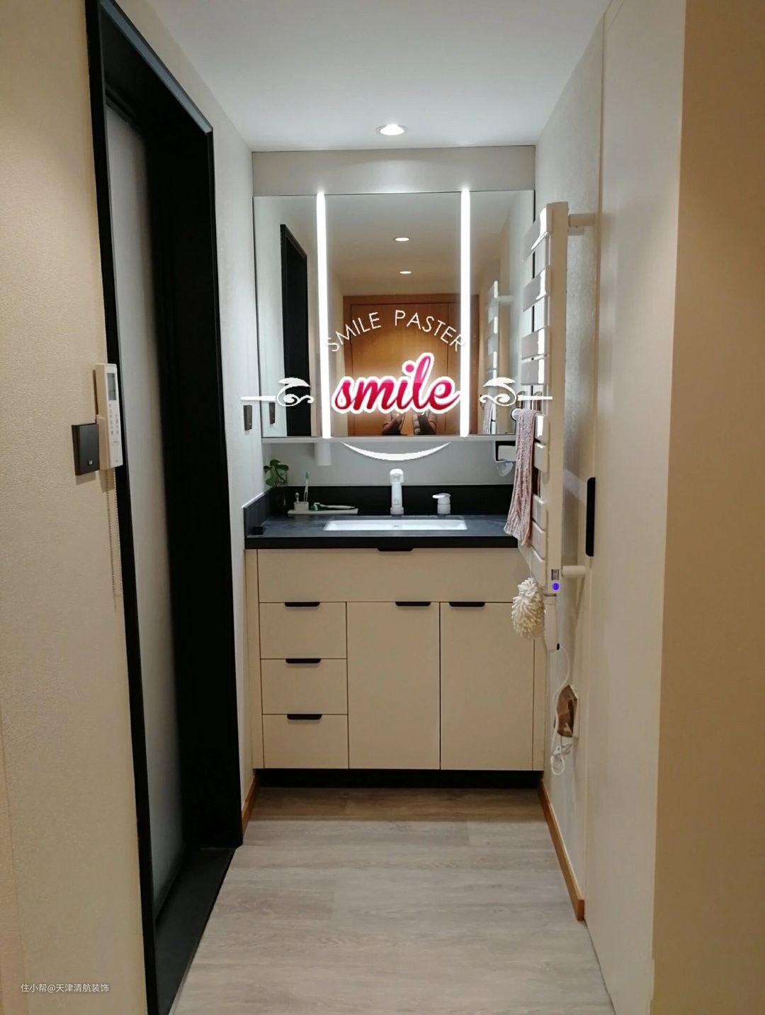 浴室柜也是分开出来的,不过,用浴帘做干湿分离,一家人都很满意。地面铺贴的瓷砖,耐脏又防滑,真心喜欢。安装了非常实用的电热毛巾架,很实用。分享于互联网,不代表公司任何立场,不承担任何责任如侵删。