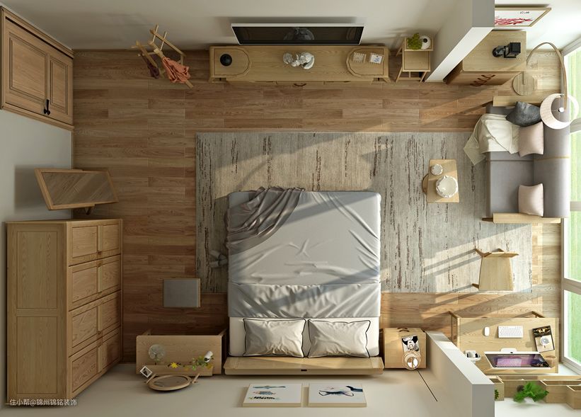 原木色系的床,放在卧室中,在休息放松的地方,感觉总是更加贴近自然,不动声色中,拉近了我们和自然感的距离。