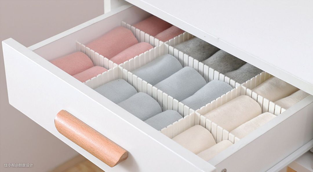 有抽屉的话,还可以搭配一些抽屉分隔,无论是衣柜内分隔内衣、袜子,还是用在厨房分类餐具都是比较实用的。