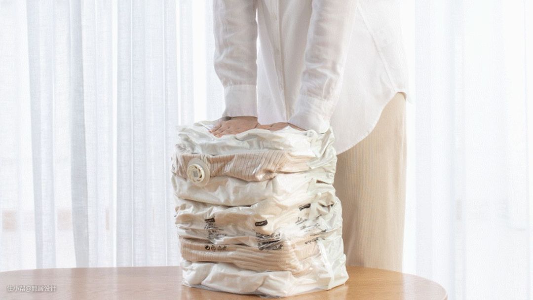 如何在有限的储物空间内尽量的收纳呢,其中一个办法就是压缩所要收纳的物品,比如被褥、羽绒服等,体积能缩减一半以上,储物能力自然也就上来了。
