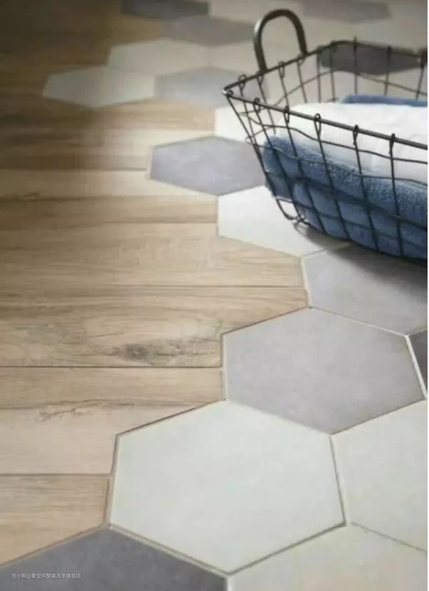 和普通木地板相比,木纹砖能铺出更多花样,在这儿列举几例。