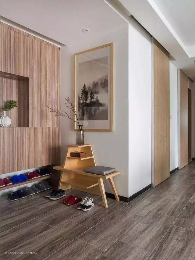 入户区域、过道走廊、楼梯这种常过人的区域是清洁重灾区,想营造温馨感又嫌费事,除了铺地垫,也可以试试木纹砖。