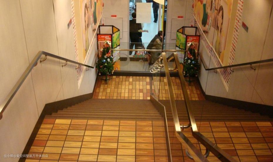 快餐厅楼梯常用的“麦当劳砖”其实就是仿木的瓷砖,方便打理
