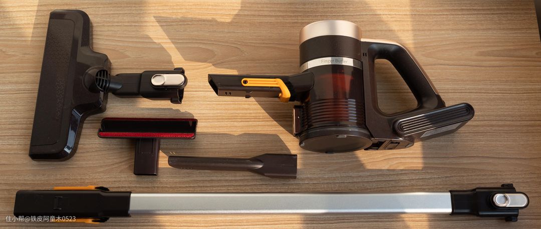 之前家里使用的吸尘器地板刷头都不能旋转,最多也只支持90度扭动,这款手指管家的地板刷头可360度随意旋转,可有效清理地面上大部分的灰尘、杂物、头发等垃圾。