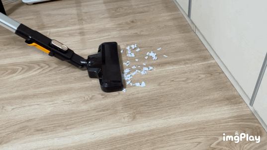 吸力表现方面,共有“标准模式”和“加强模式”两档不同风力。针对不同环境、不同清洁程度可调节两种不同模式。从以上两张动图中,可看到其强劲的吸尘能力、高速的电机马达,完全可以应付生活中不同需求的吸尘功效!