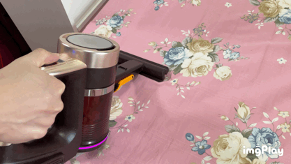 为了方便操作,吸尘器的电源开关与电源呼吸灯设计在手持握把上方,在手持吸尘器时就可轻松用拇指按压开关操作,相当便捷。
