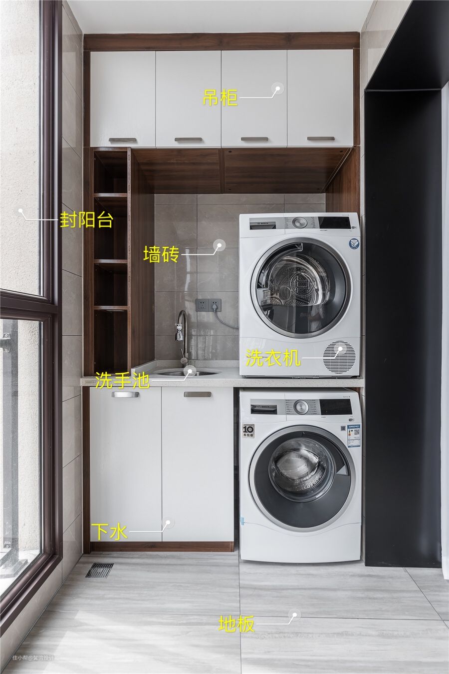 吊柜/杂物柜:放洗衣液洗衣粉鞋刷之类的,不要太方便哇!阳台一定要有柜子,吊柜不占地面空间,首选!