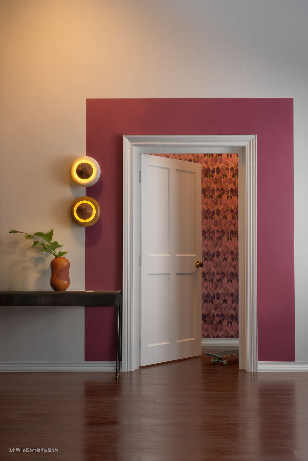 高贵中带着俏皮,室内装修设计颜色量的运用极为重要,较深的粉色则选择了少量作为出挑的点缀。
