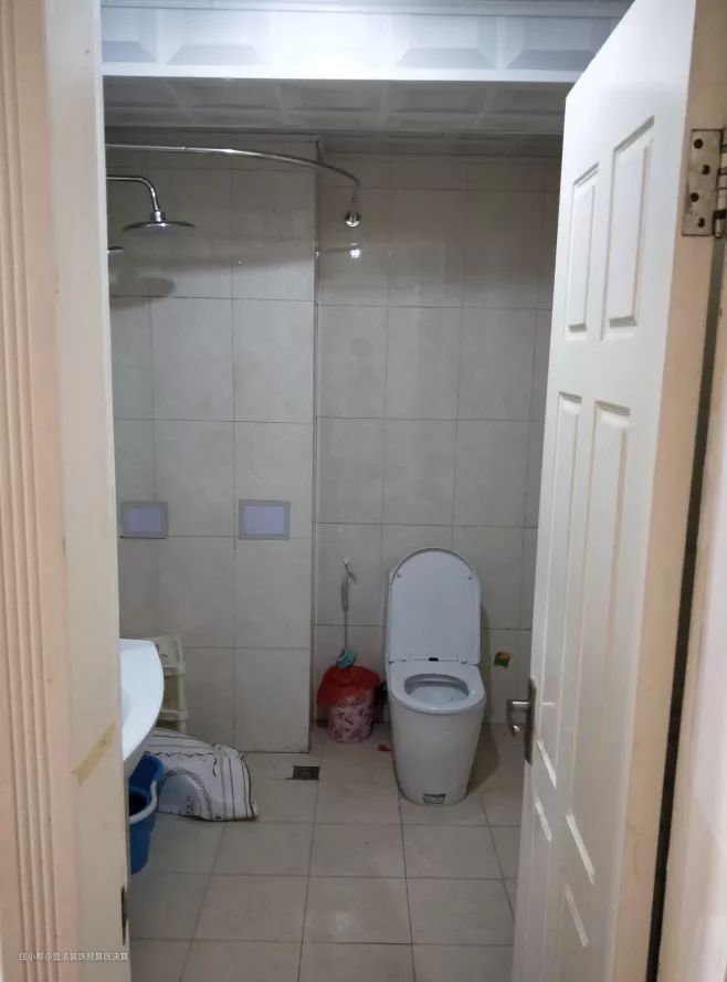 改造前,卫生间没有收纳空间,地漏安装位置不合理,干湿分离只能依靠浴帘来做分割