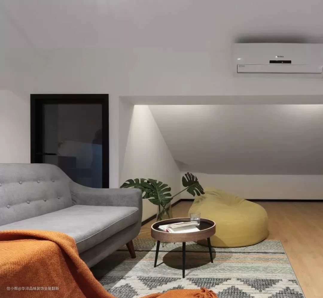 阁楼直接封闭边缘不可利用的空间,不仅降低装饰造价,空间体验感也大大提高,主区满足看球赛、打游戏、看电影、阅读办公等多功能需求。
