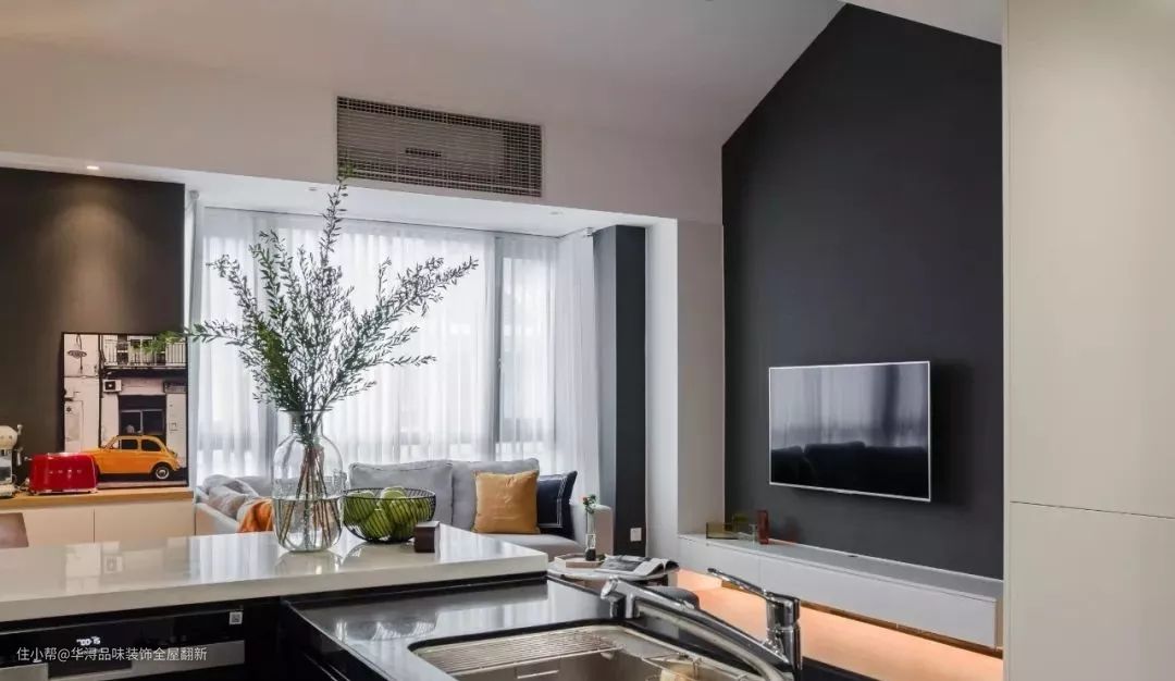 整个空间始终遵循化繁为简的设计手法,能藏则不露露必有颜,比如客厅的壁挂、空调机以百叶装饰遮挡,把不好看都藏起来。