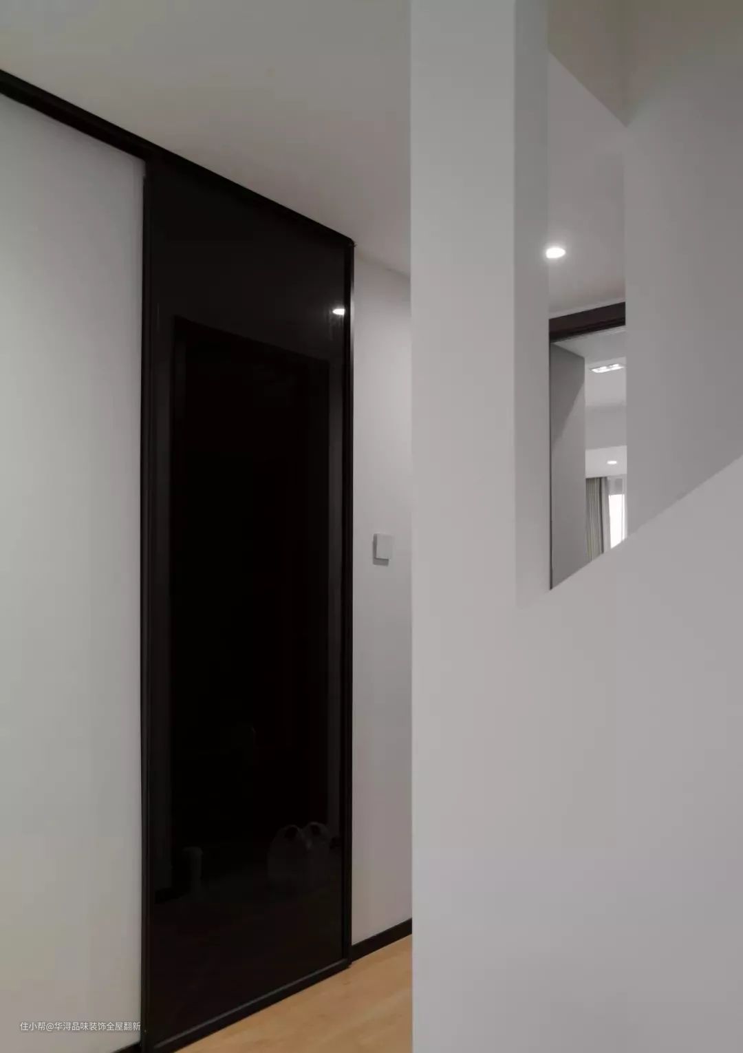 色彩上设计师根据业主的喜好,以干净的白作为底色,黑、灰色以线条、块面状出现,再设计温润的木色,由地面向墙上蔓延,整体色调不会显得那么冷冰冰。