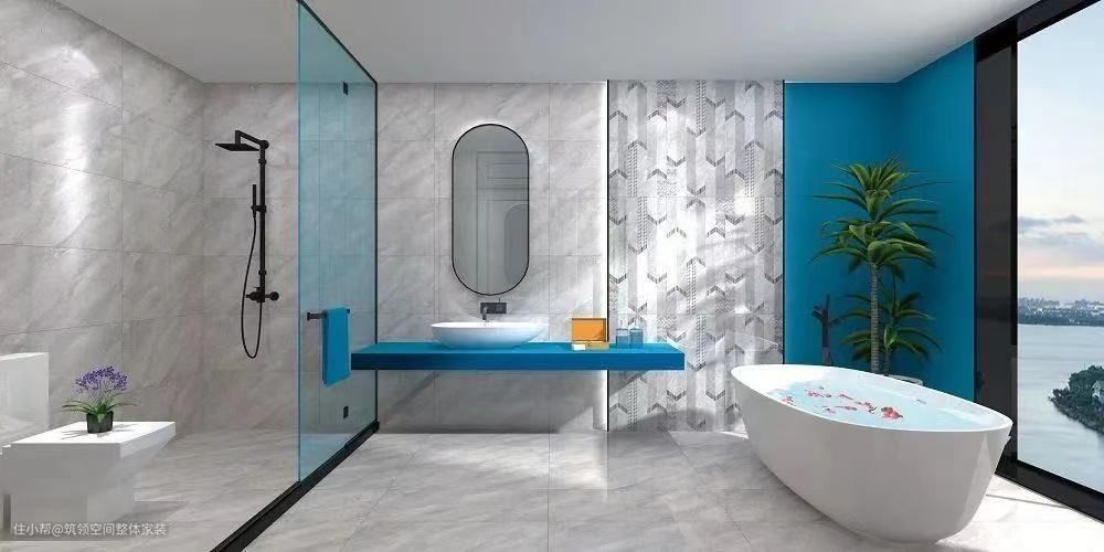 中板能下地,传统瓷片不能下地,而且中板是抛釉技术,完全可以做到和地砖形成墙地一体的铺贴效果。