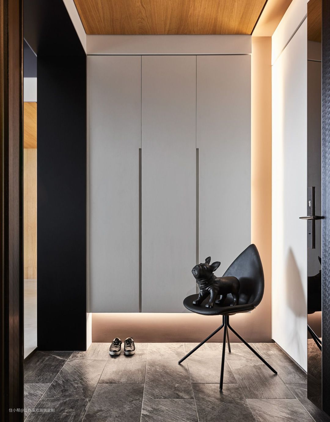 这个说实话,现在还有人在建议做格栅或者网格门,但是不建议,我一般建议业主要么底板开透气网格孔,要么做鞋柜消毒精灵,美观和透气都能保证