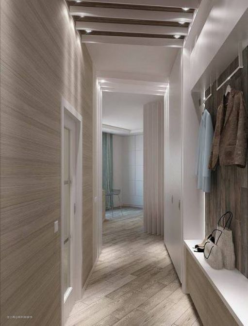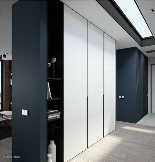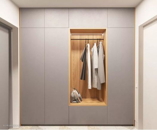 嵌入式壁柜是节省空间的利器,在设计之初,它往往和进门处的吊顶连接在一起,不仅外观看起来简约大气,而且拥有十分充足的内部收纳空间,可以将衣服、鞋帽、包包等杂物统统隐藏起来。