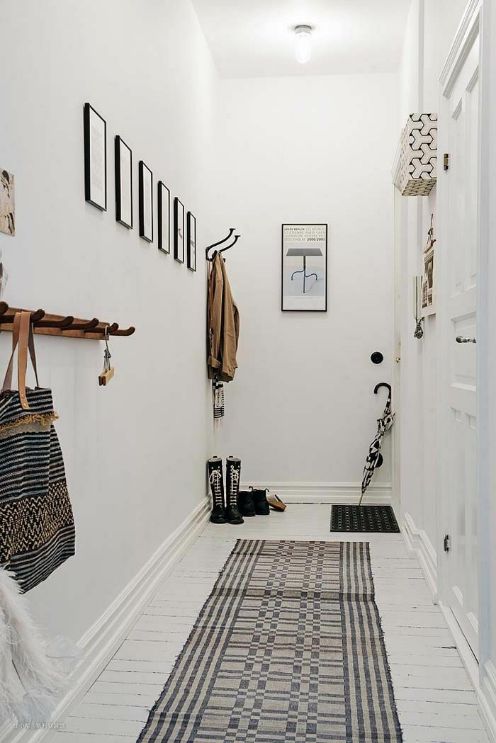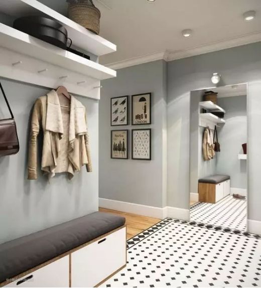 在留空区域安装几个挂钩,外套、帽子、包包等都有了合适的藏身之处,进出门的时候就再也不用跑到别的房间,轻松省事多了。
