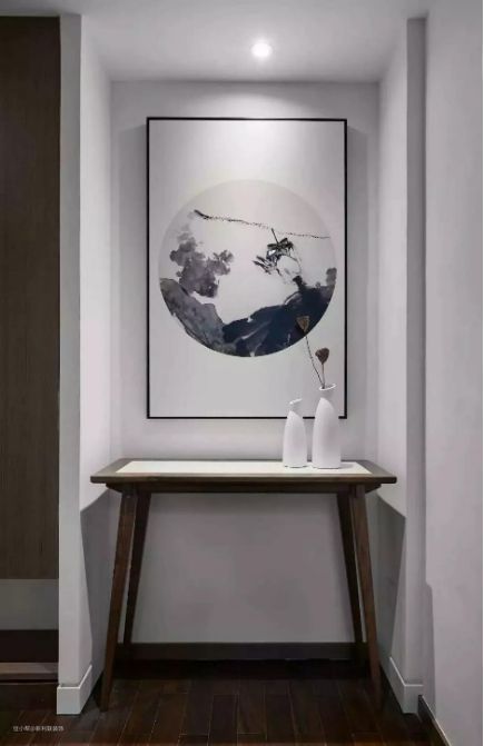 玄关桌的装饰手法有很多,你可以根据自己的品味爱好自由选择。在案几上摆放一些具有中式韵味的盆栽、饰品、装饰画等,可以让人一眼便感受到整个家的文化氛围。