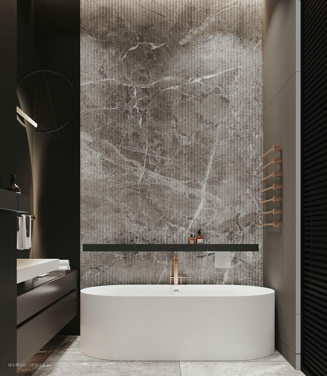 小户型浴室如果想要选择圆形浴缸,一个是适合的浴缸比较少,另一个问题是直径不够会导致舒适度下降。